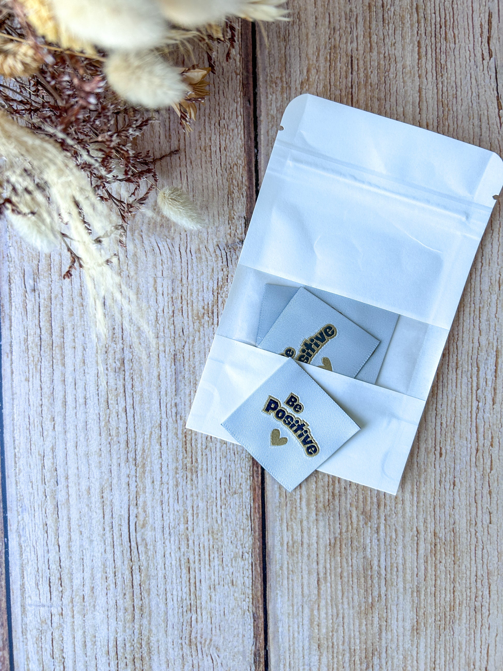 Apportez une note inspirante et pleine d’énergie à vos créations couture grâce à cette jolie étiquette à coudre "Be Positive". Avec son inscription dorée scintillante et son fond gris clair, elle allie sobriété et élégance tout en diffusant un message positif. Cette étiquette tissée est idéale pour personnaliser vos accessoires, vêtements faits main, pochettes, trousses ou créations artisanales. Facile à poser, elle ajoute la petite touche finale qui rend chaque réalisation unique et inspirante.