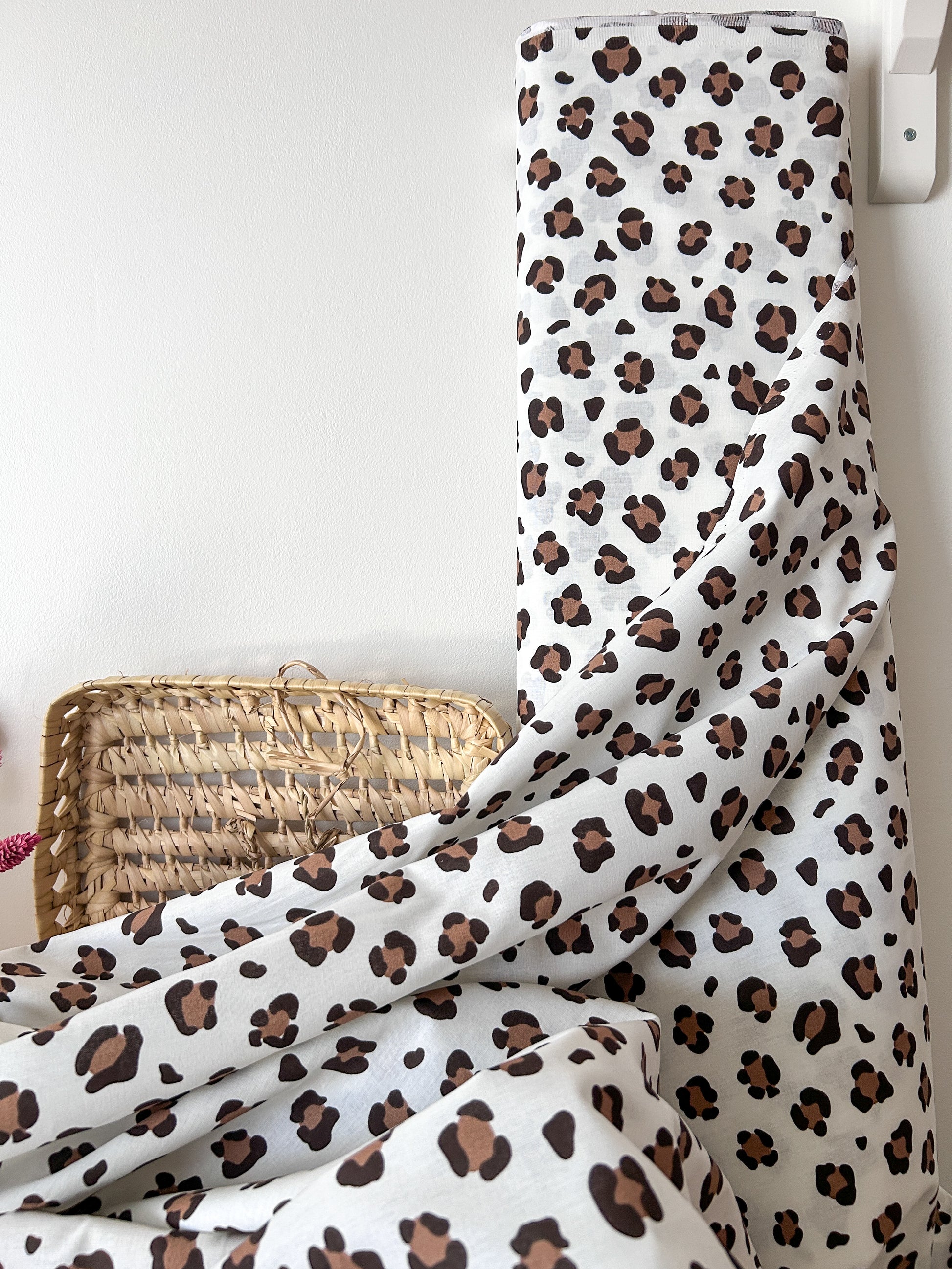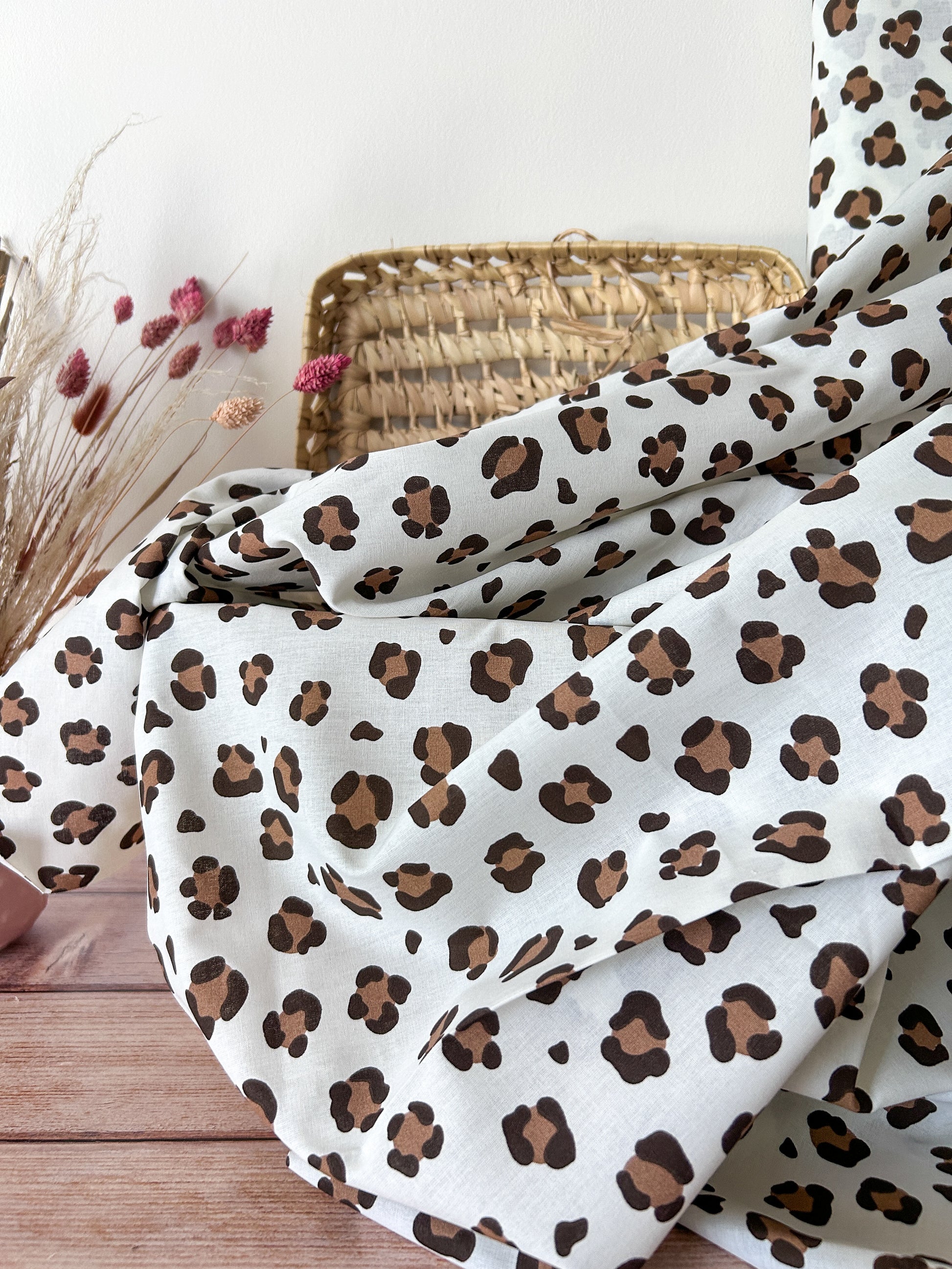 Un tissu popeline 100% coton au motif léopard beige et marron sur fond écru. Léger, souple et facile à coudre, il sera parfait pour réaliser des vêtements élégants, des accessoires tendance ou des éléments déco raffinés.